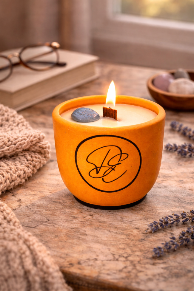 Hand-poured with natural soy wax and finished with a crackling wooden wick, this 7 oz candle creates a warm, soothing glow for rest and relaxation.